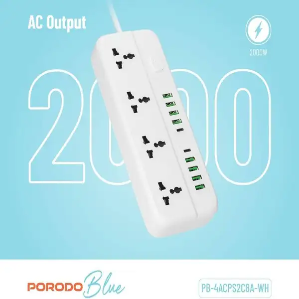 چندراهی برق پرودو مدل PORODO Blue 4 Universal Sockets Power Strip با توان 2000 وات، چهار پریز یونیورسال، خروجی USB و کابل 3 متری، یک انتخاب هوشمندانه برای خانه و محل کار است. این محصول با طراحی مقاوم و کاربردی، تجربهای راحت و ایمن از مدیریت برق را برای کاربران فراهم میکند.