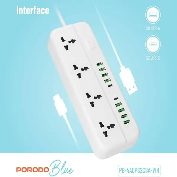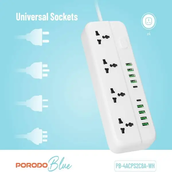 چندراهی برق پرودو مدل PORODO Blue 4 Universal Sockets Power Strip
