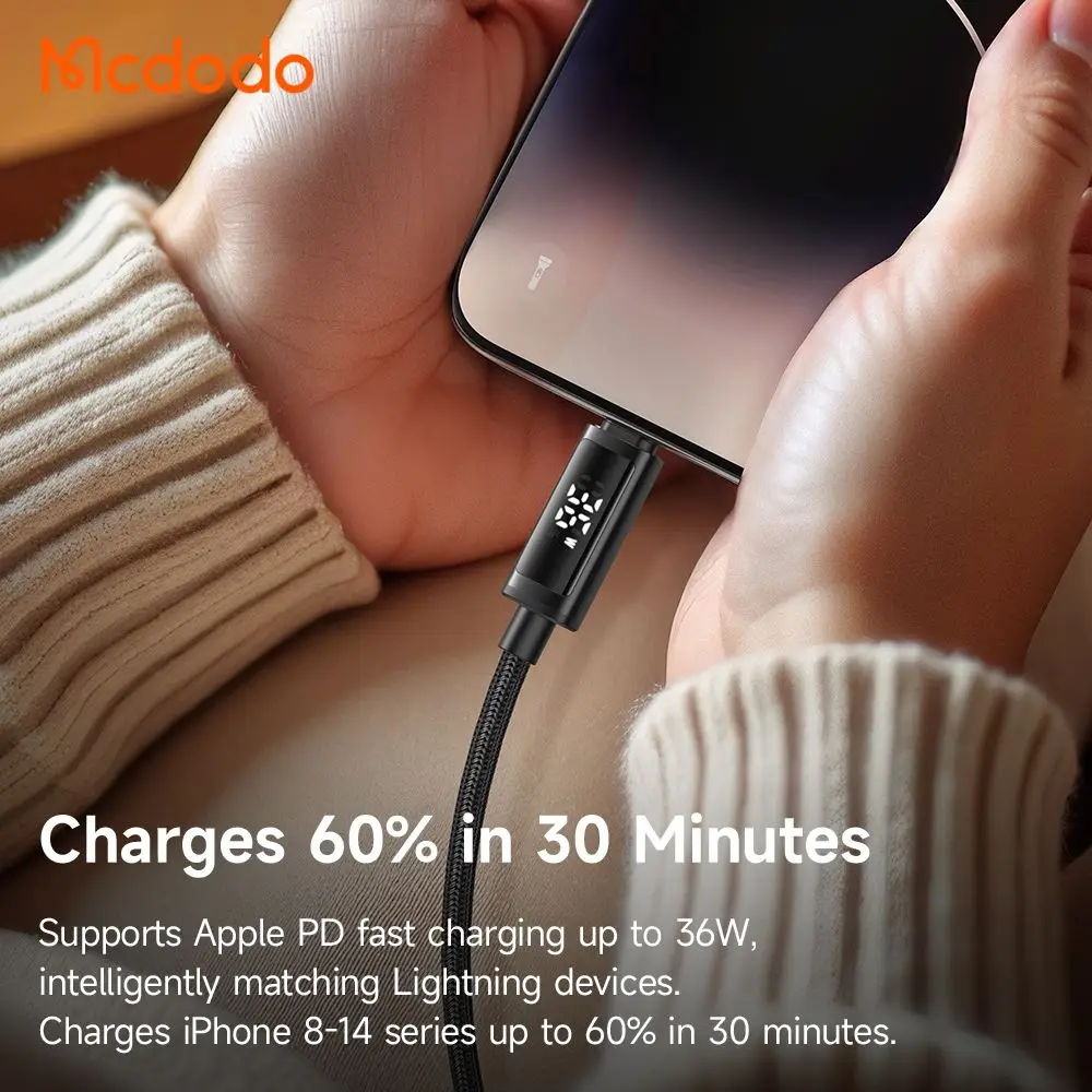 کابل شارژ تایپ سی به لایتنینگ 36 واتی با نمایشگر دیجیتال 1.2متر مک دودو مدل MCDODO CA-7990