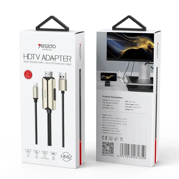 کابل HDMI یسیدو مدل HM12 با کیفیت تصویر بالا، طراحی مقاوم و نصب آسان، انتخابی عالی برای کاربرانی است که به دنبال راهحلی ساده و مؤثر برای اتصال آیفون یا آیپد به نمایشگرهای بزرگ هستند.