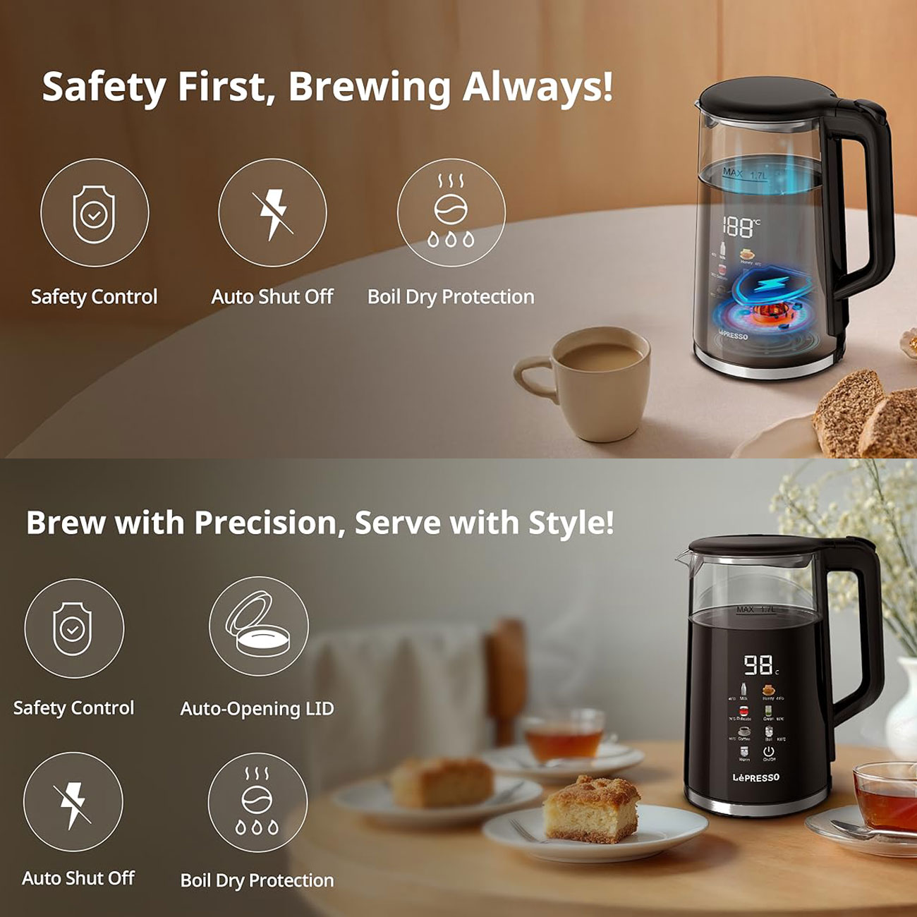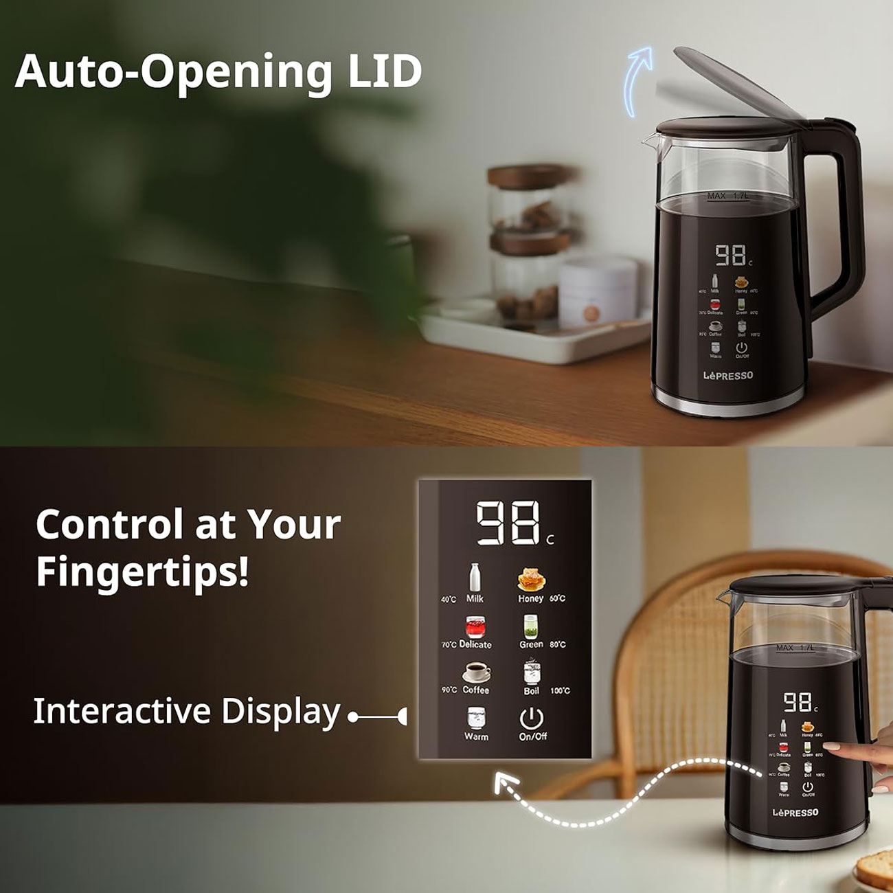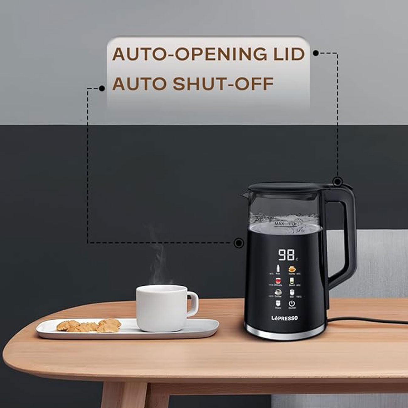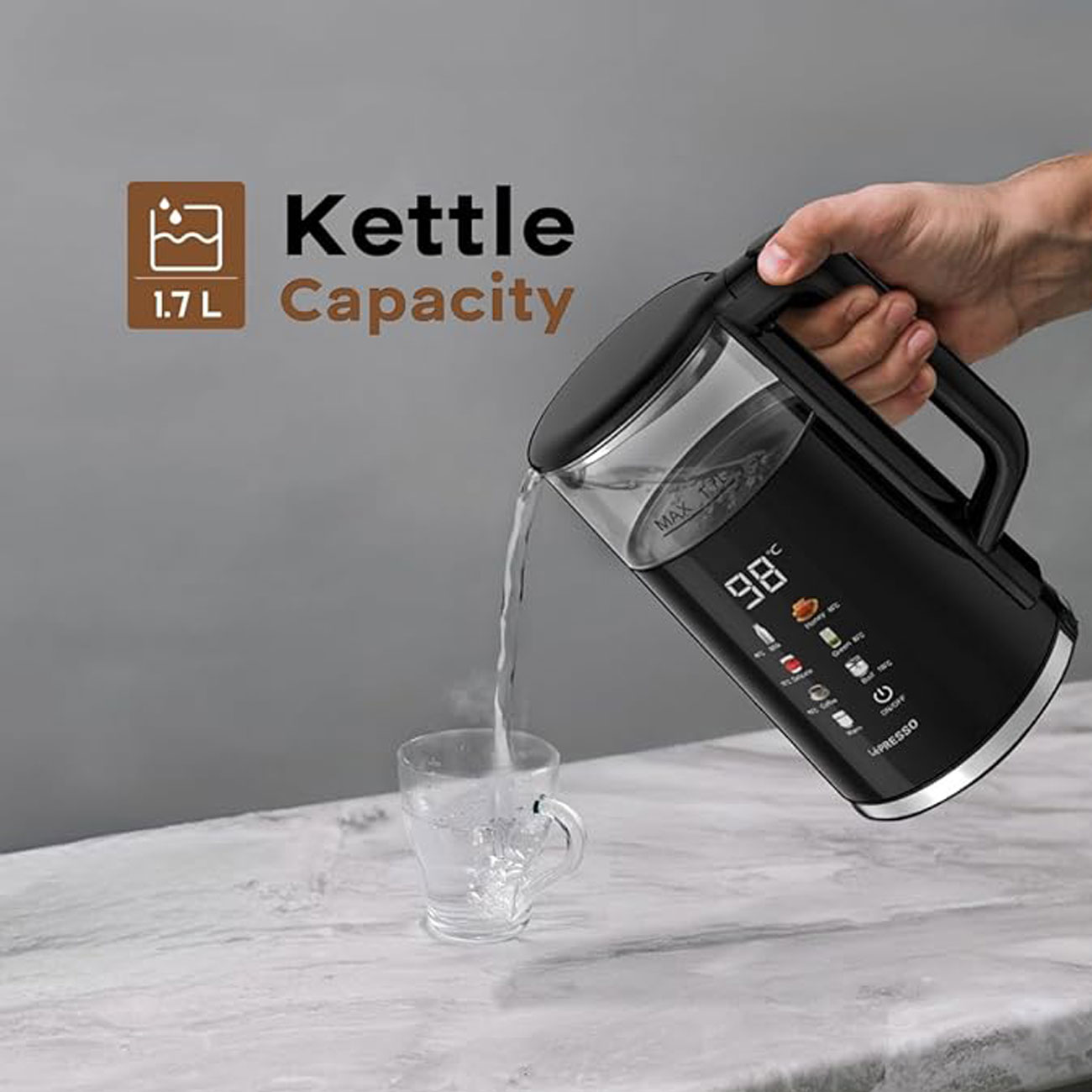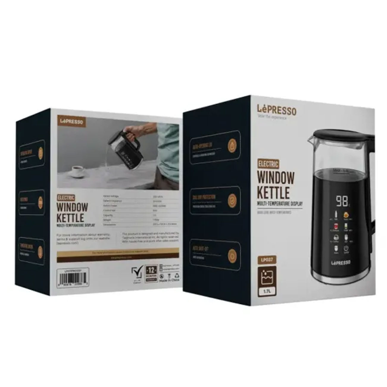 کتری برقی چند دمایی با نمایشگر پنجرهای لپرسو Lepresso Electric Window Kettle Multi-Temprature Display LPCFFM0037
