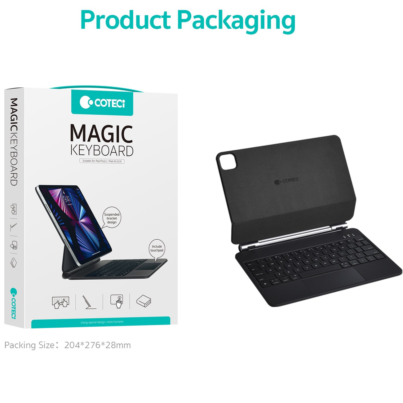 کیبورد کیس مگنتی کوتسی COTECi مدل 64018 برای آیپد ۱۰.۹ و ۱۱ اینچ با ترک‌پد و نور پس‌زمینه
