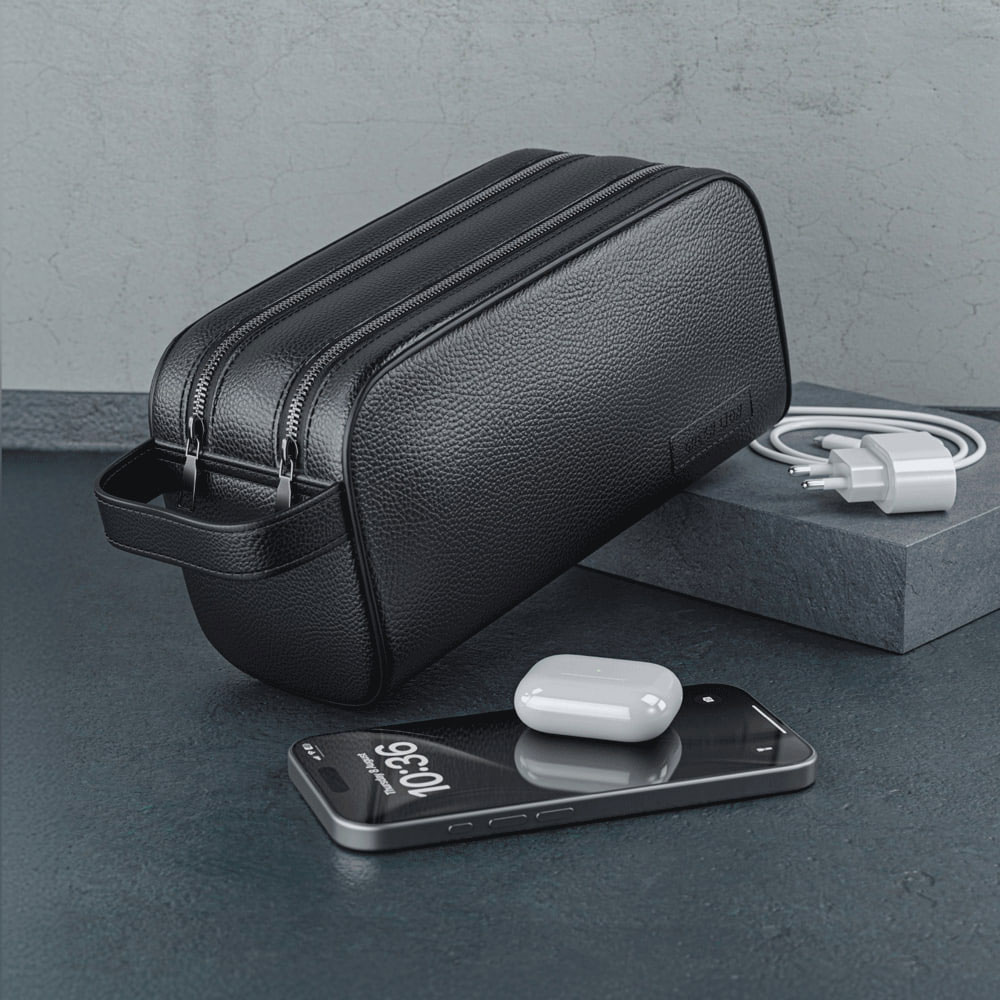 - زیپ اول را باز کنید و کابلها، هندزفری یا شارژر فندکی را داخل بخش بزرگتر قرار دهید.